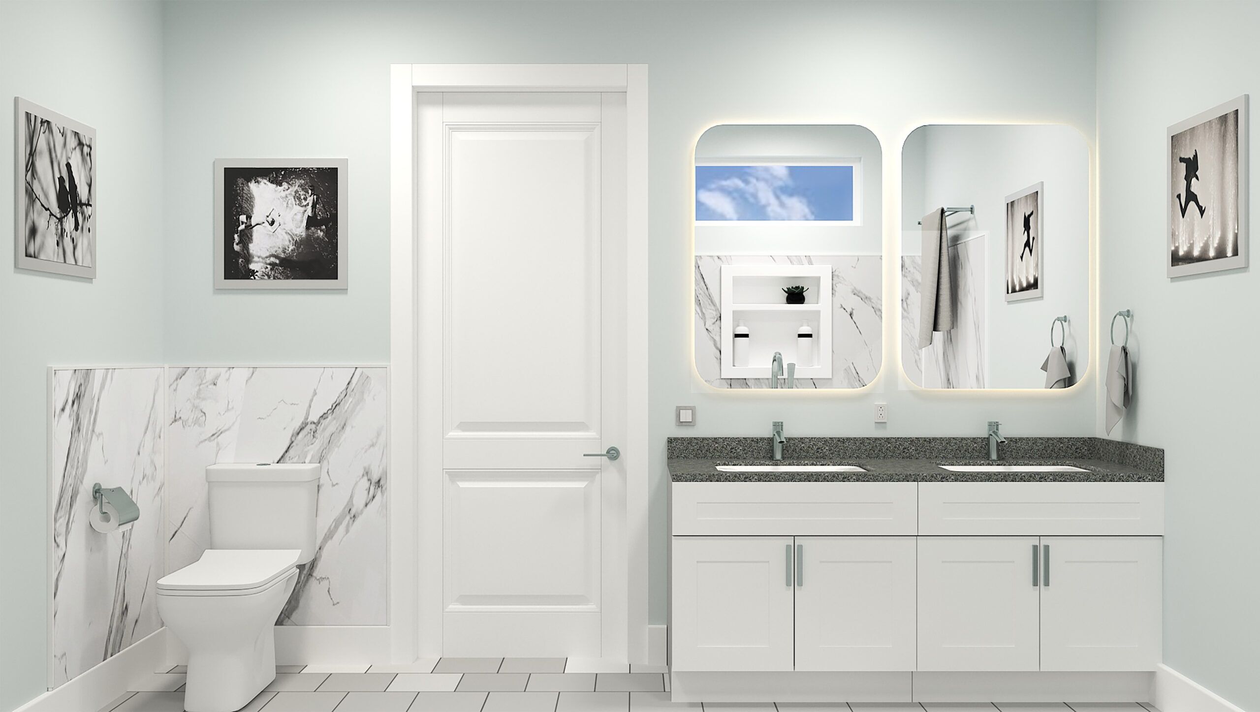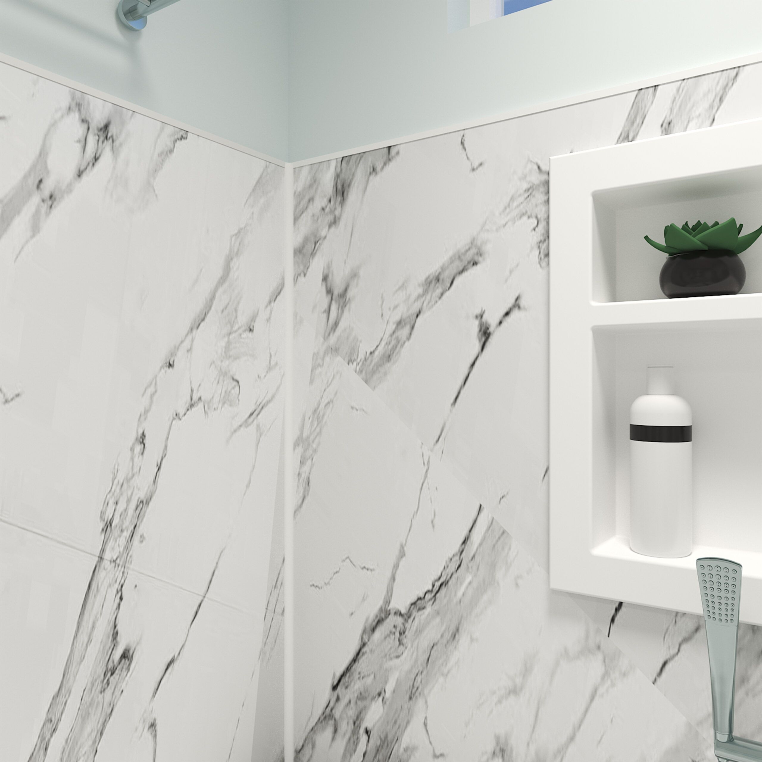 Natural and Relaxing Atticus Poly Panels with ZERO GROUT and Bella CORE’s Innovative Linen Pattern Shower Surround.