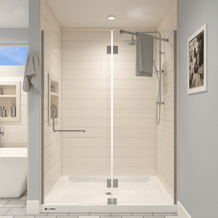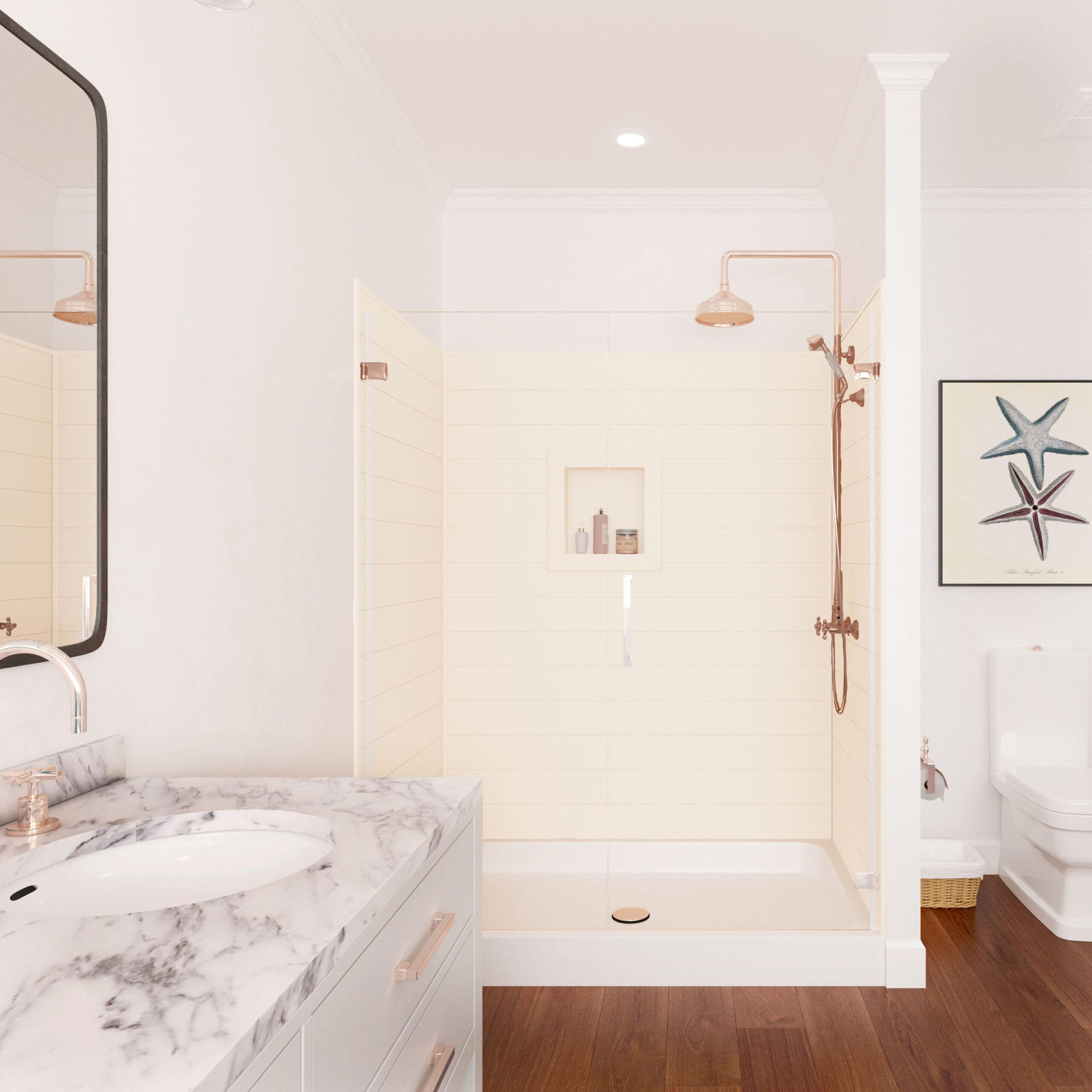 Bella CORE’s poly shiplap panels create a unique and elegant custom appeal that offers a solution to the messy grout that comes with installing tile and the vanilla acrylic inserts that have become so predictable.