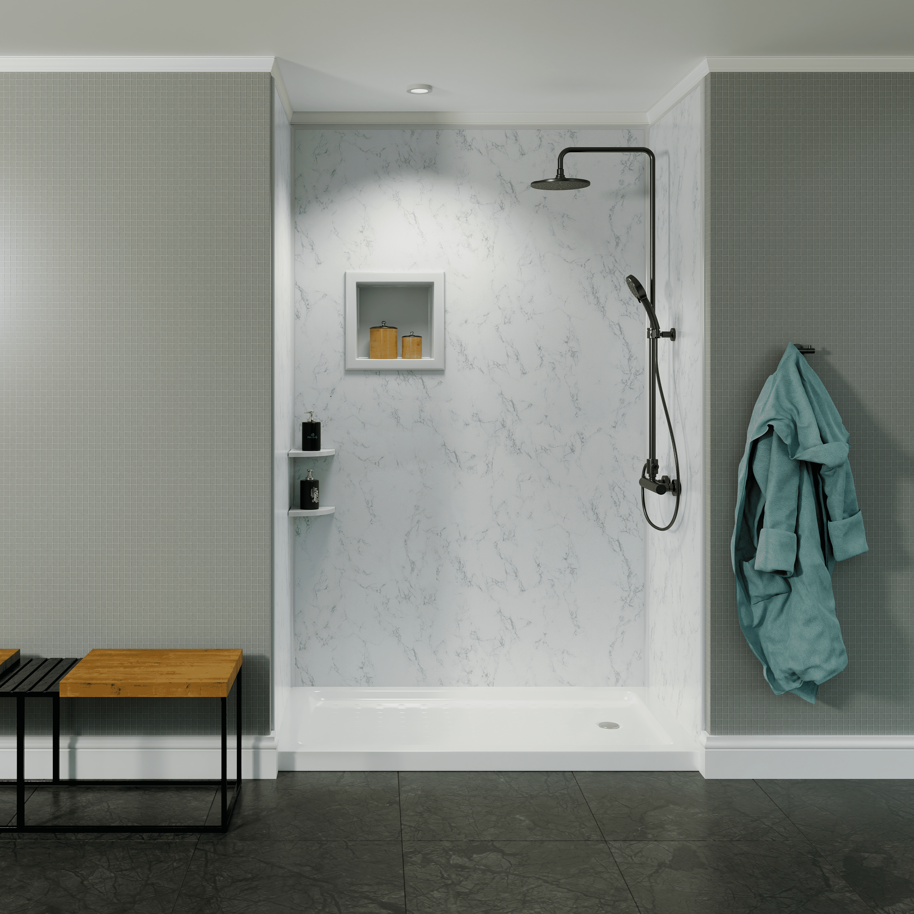Bella CORE’s poly panels create a unique and elegant custom appeal that offers a solution to the messy grout that comes with installing tile and the vanilla acrylic inserts that have become so predictable.